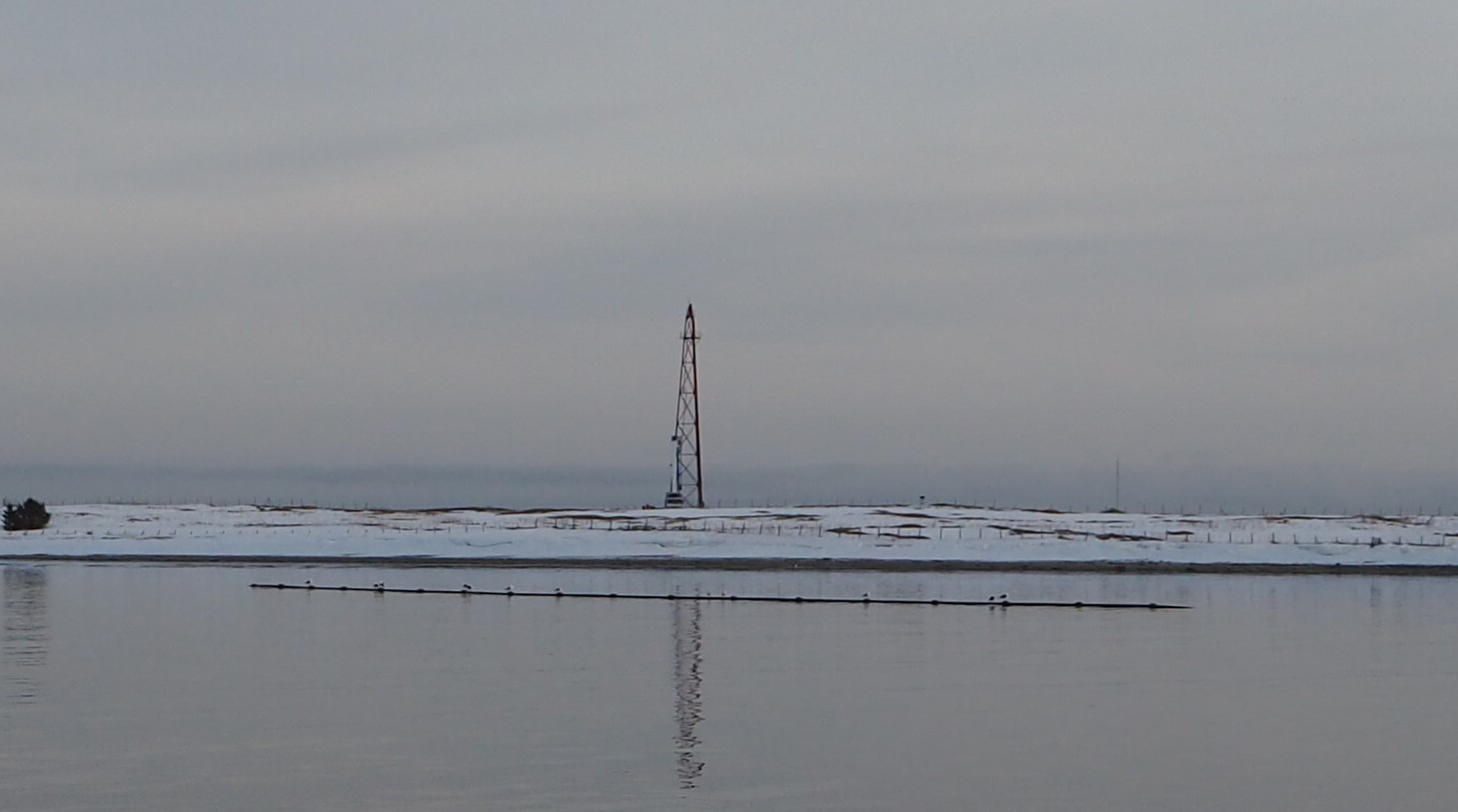 Vadsø installasjon jobber med oppsett av lys på luftskipsmasta, mars 2022. Foto: Lisbeth R. Dragnes/Vadsø museum-Ruija kvenmuseum