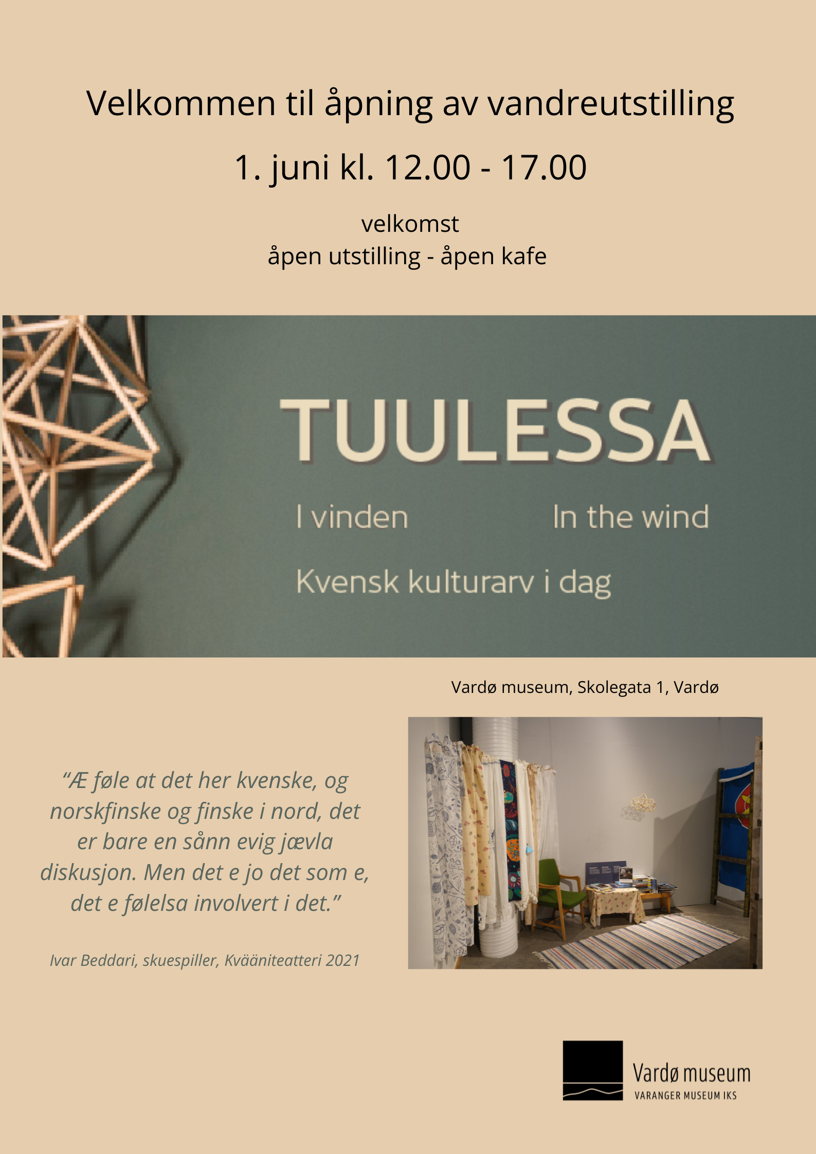 Vi starter sommersesongen 1. juni kl. 12.00 med åpning av vandreutstillingen «Tuulessa – i vinden»!